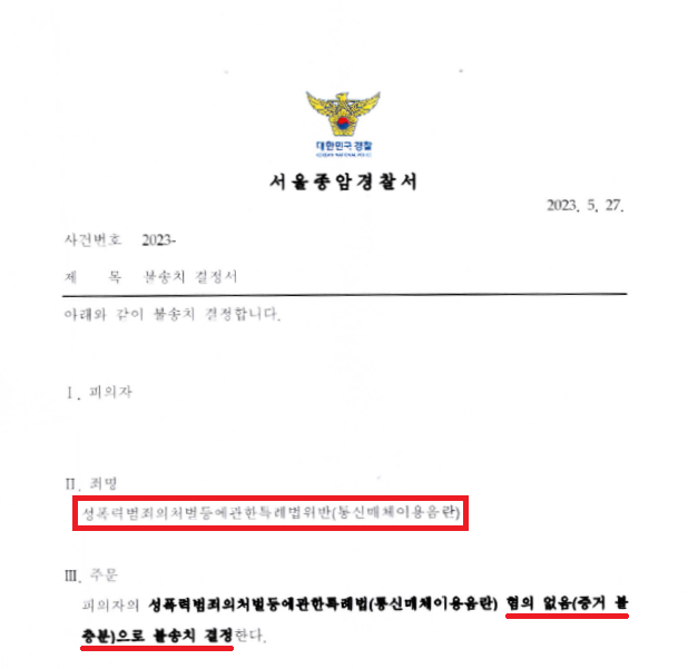 ⑤ 경찰 조사 때 동행하여 '다톡'의 특성, 랜덤 채팅 어플리케이션 헌터의 유행과 문제점, 그리고 제가 맡은 사건들 중 무혐의로 마무리한 사건들의 불송치결정서와 불기소이유통지서, 무죄로 마무리한 사건들의 판결문을 정리하고, 특히 이 사건과 같이 고소인이 통매음을 언급하면서 고소 선언을 하고 사이버범죄 신고시스템(ECRM) 접수 문자메시지를 캡처해서 보여준 사건을 무죄 판결로 이끌어낸 주장들과 이러한 주장들을 대부분 인용한 무죄 판결의 판결 이유를 토대로 이 사건 고소인 역시 '다톡'의 특성을 악용하여 고소한 것으로 성적 채팅이나 사진 전송에 동의한 것이므로 통신매체이용음란죄는 성립하지 않는다는 내용을 적극적으로 어필하였습니다.