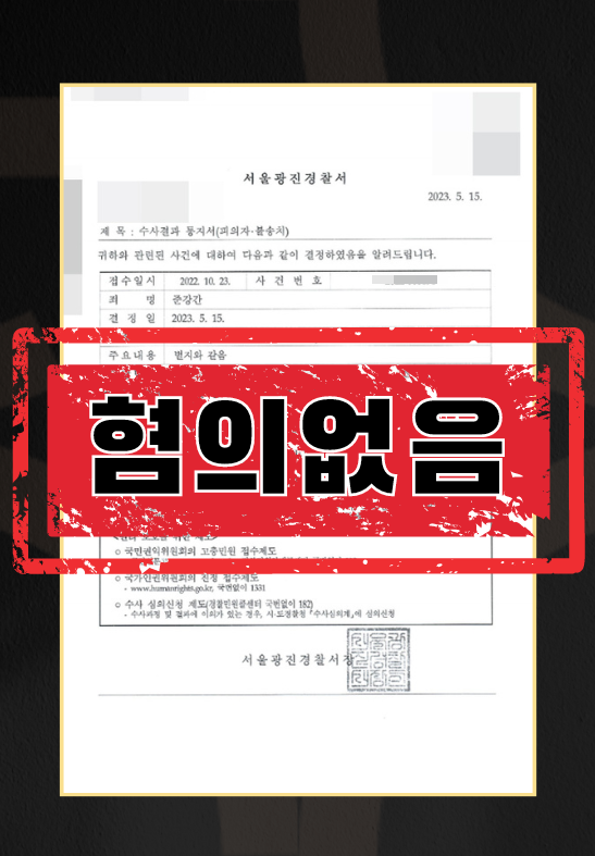 조사 후에는 저희 주장을 법리적으로 뒷받침할 수 있는 변호인의견서 및 관련 증거자료를 정리한 서면을 제출하였고, 끈질긴 변호 끝에 경찰단계에서 혐의없음으로 불송치 결정을 받아 성공적으로 신속하게 마무리할 수 있었습니다.