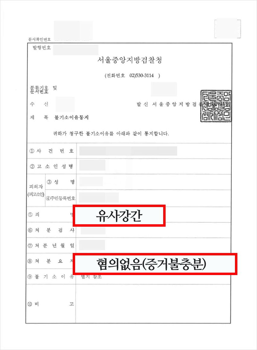 그래서일까요. 수사기관도 피해자의 진술을 신뢰하기 어렵다고 판단하여 의뢰인에게 혐의없음의 불송치결정을 내렸습니다.