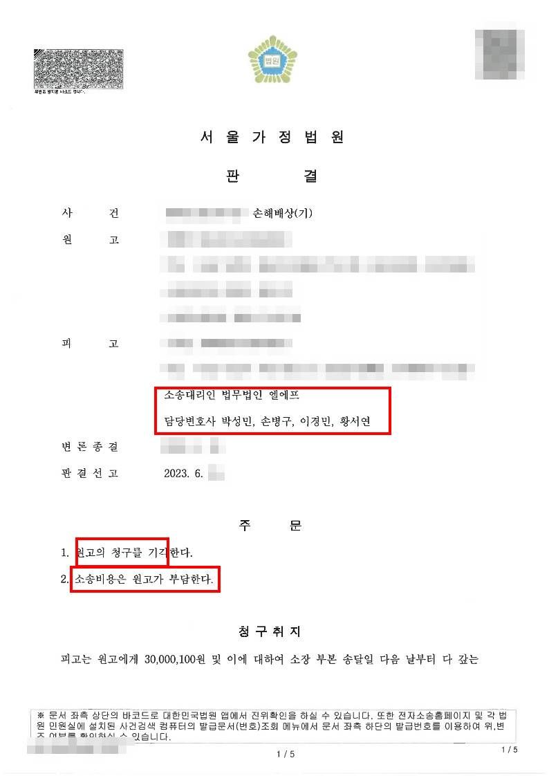 │LF는 원고측에서 제시한 증거들을 파악한 후 의뢰인과 상담을 통해 사실관계를 면밀히 살펴보았습니다. 법정에서 증거들에 대한 원고의 주장을 탄핵하며 위자료 청구를 기각해줄 것을 강력히 요청하였습니다.