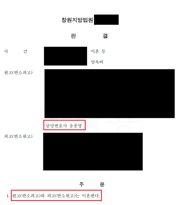 법원은 송종영 변호사의 주장을 받아들여 의뢰인과 A가 이혼하라는 판결을 내려주었습니다.