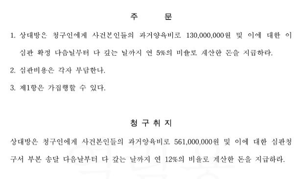 법원은 전 남편에게 두 자녀의 과거 양육비로 1억 3,000만원을 지급할 것을 결정하였습니다. 의뢰인이 십수 년간 두 자녀를 홀로 키워오면서 부담하였을 비용과 그 노고에 비하면 1억 3,000만원이라는 금액이 부족할 수 있지만, 그래도 전 남편에게 양육에 대한 책임을 뒤늦게나마 부담시킬 수 있었습니다.