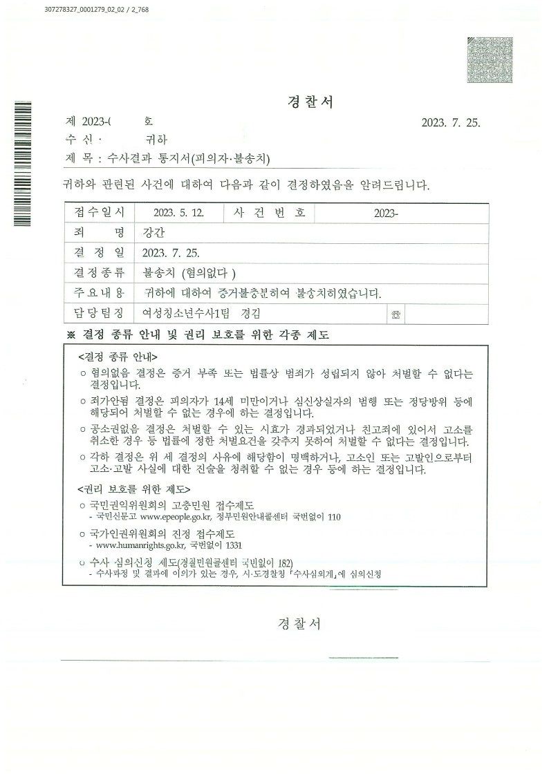 수사기관은 법무법인 수안의 의견을 받아들여 불송치 결정을 하였습니다.