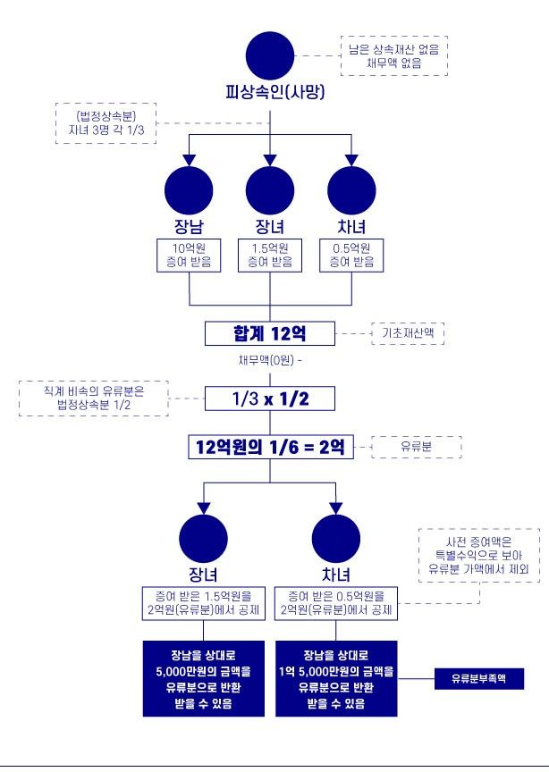 "구체적인 예시를 들어 조금 더 쉽게 유류분부족액을 계산하여 보도록 하겠습니다."