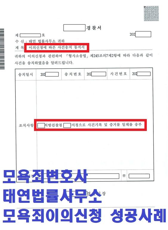 바로 모욕죄 불송치결정을 내린 것입니다. 해당 사건이 불송치 결정이 난 것에 납득할 수 없었던 의뢰인은 태연법률사무소와 함께 끝까지 진행해보시기로 결정하셨고, 이에 모욕죄이의신청을 진행하시기로 합니다.