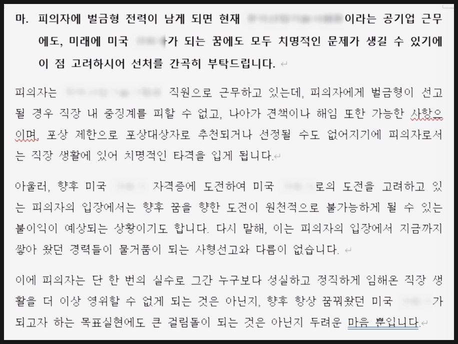 여러분 상황에 유리한 점을 근거로 기소유예를 이끌 수 있는 맞춤형 전략을 모색해 보아야 합니다.