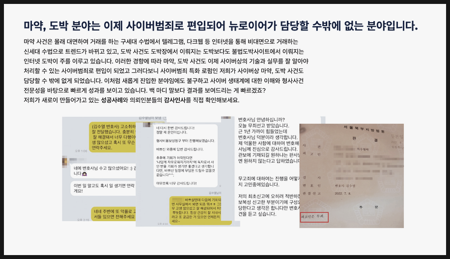 아무래도 사이버 범죄 특화 로펌이 갑자기 마약 사건을 해결한다고 하면 의아하실듯하여 말이 길었습니다. ^^ ;