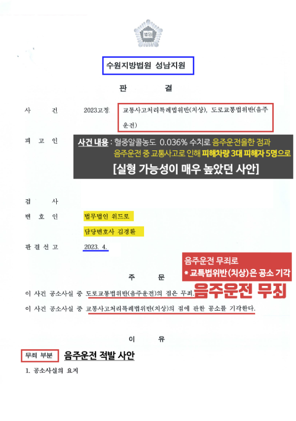 *처분 : 음주운전 무죄, 교통사고처리특례법위반 치상 공소권기각