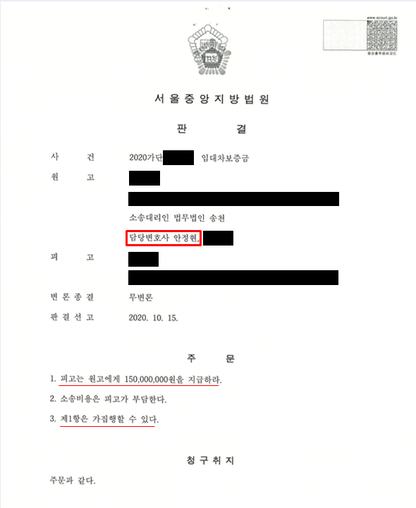 의뢰인은 임대인이 보증금 반환을 거부하기에 임대인을 상대로 보증금반환청구소송을 진행해야겠다고 결심하게 되었습니다.