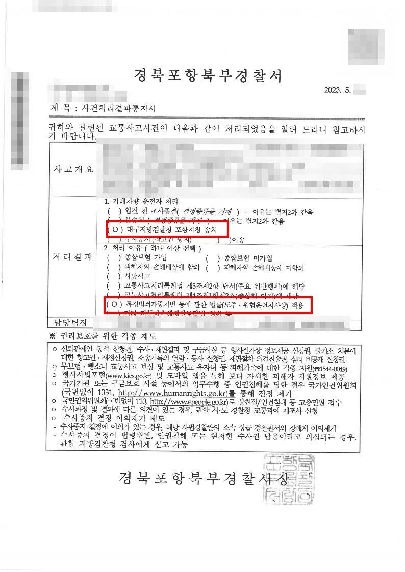 │가해자는 비접촉 사고를 발생시킨 후 의뢰인의 차량에 대한 구호조치 및 인적사항 제공 등 의무를 이행하지 않고 현장을 이탈하여 가해자에 대한 고소대리를 진행하였습니다.