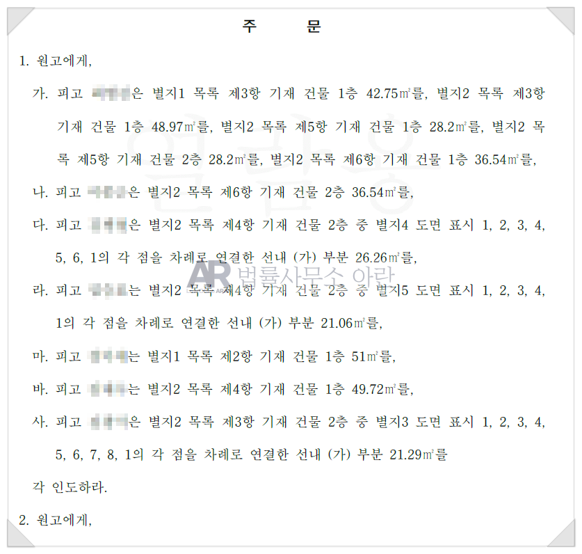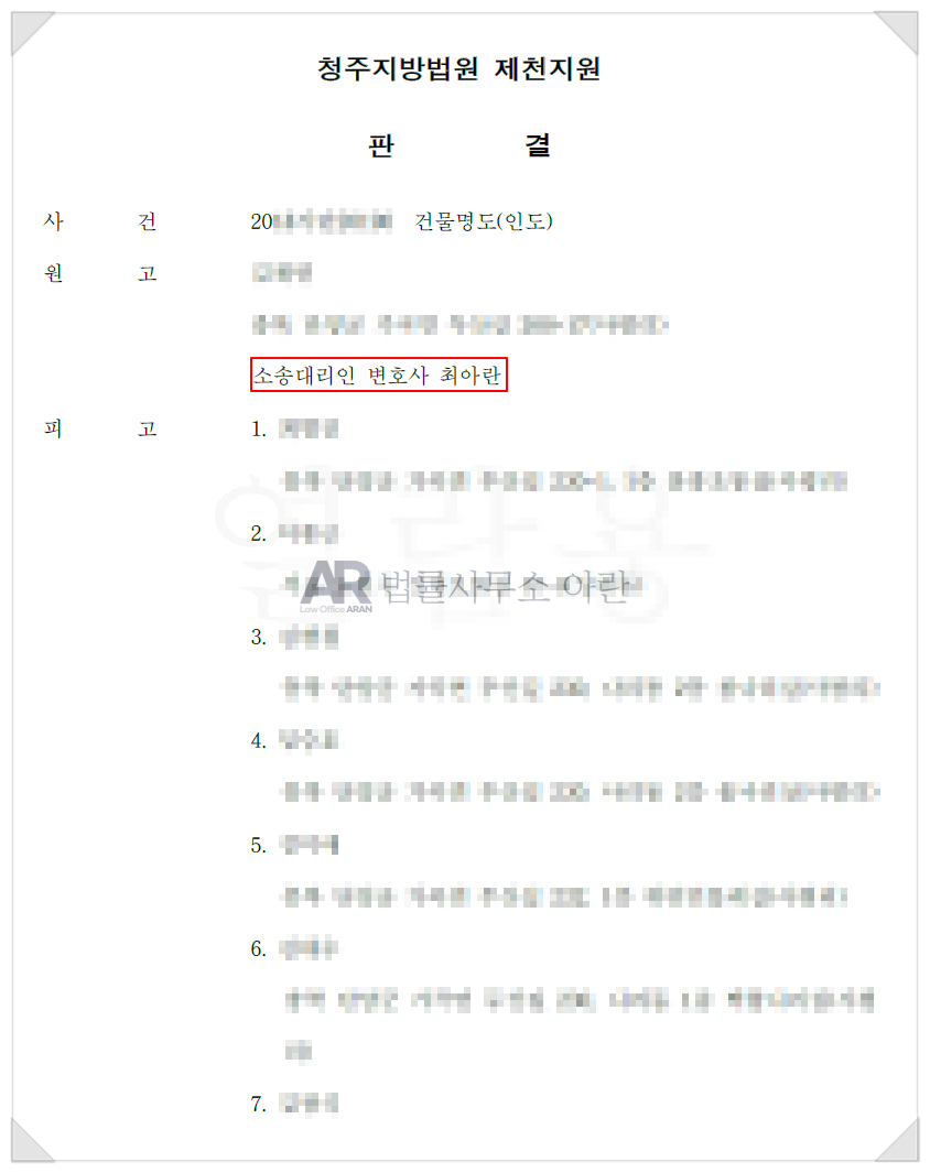 그 결과, 의뢰인은 7명의 불법점유자들에 대한 소송에서 전부 승소하였습니다.