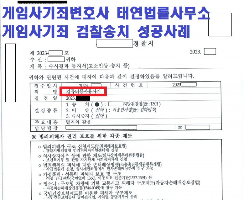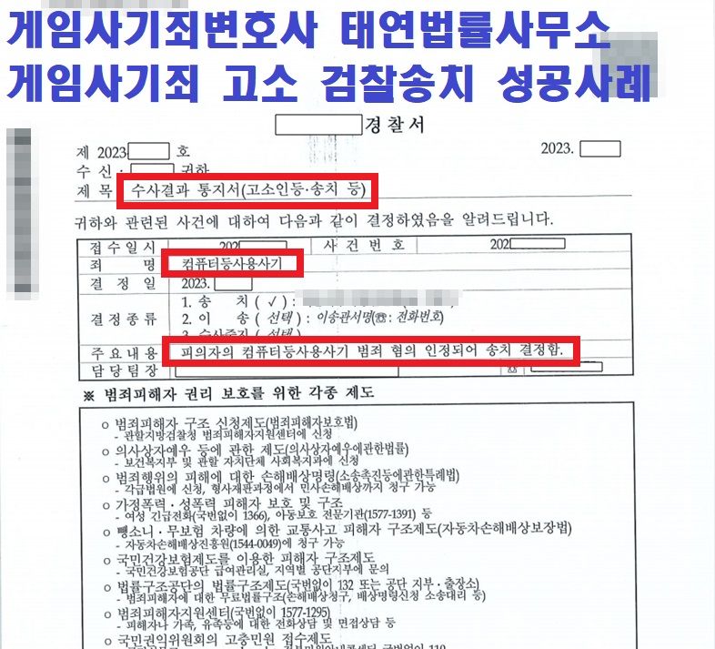 <실제사례 - 게임사기죄변호사, 검찰 송치에 성공하다!>