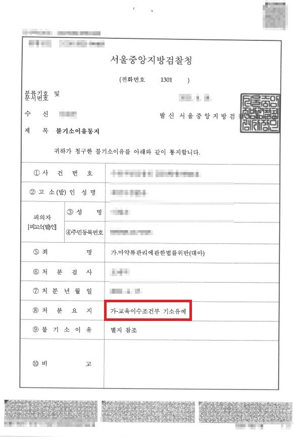 변호인의 주장이 받아들여져서 기소유예 결정을 받았습니다.
