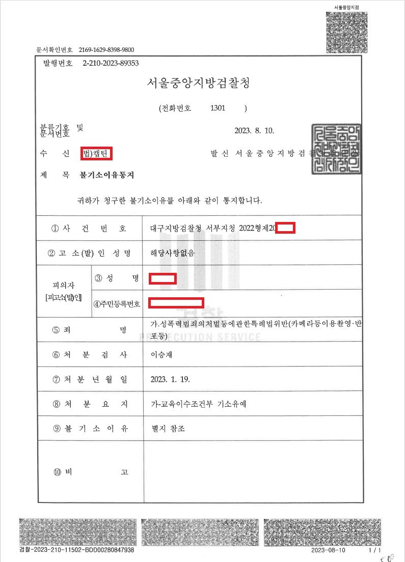 그리고 끝내 이 사건은 '교육조건부 기소유예'로 종결되실 수 있었습니다.