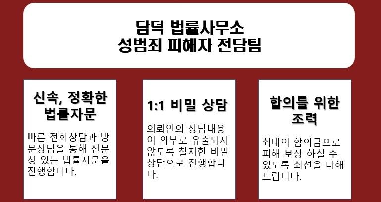 현재 의제강간 피해로 긴급하게 법적 조력이 필요한 상황이시라면 담덕 법률사무소 성범죄 피해자 전문 박지윤 변호사에게 상담문의 주시기 바랍니다.