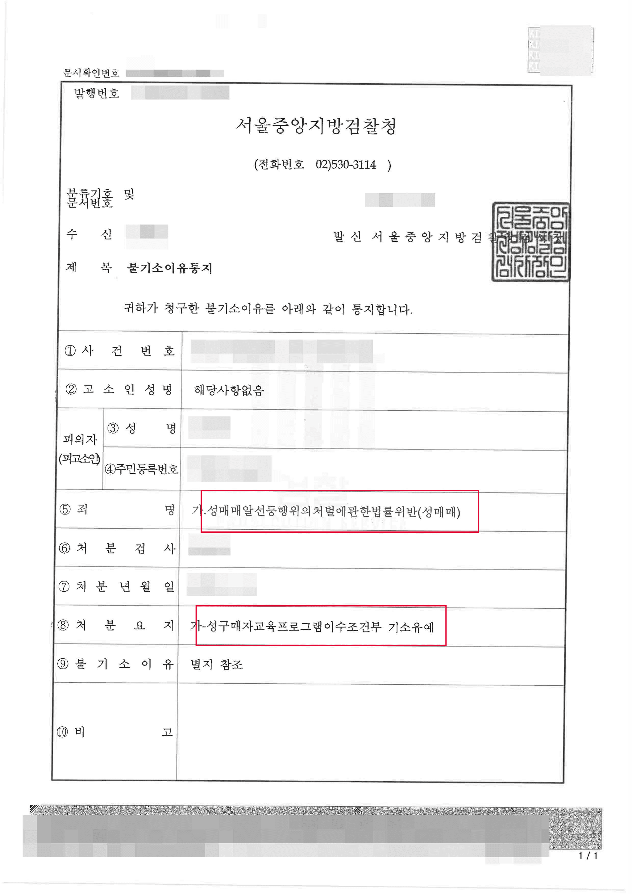 다행히 수사단계에서는 저희의 주장이 모두 받아들였고, 그로인해 의뢰인은 단순 성매매의 혐의만 인정되어 기소유예처분을 받을 수 있었습니다.