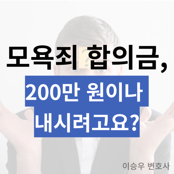 실제로 제가 봤던 합의 실패한 사례 중에 "모욕죄 합의금으로 10,20만원 이면 되지 않을까?" 하고 가볍게 생각했다가 낭패를 본 피의자 분도 있었습니다.