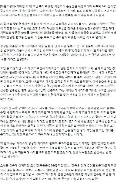 박혜원 기자, 「“코인 손실 갚아라” 14시간 감금까지…‘원한범죄’ 부르는 코인사기」, 『헤럴드경제』, 2023. 6. 22.