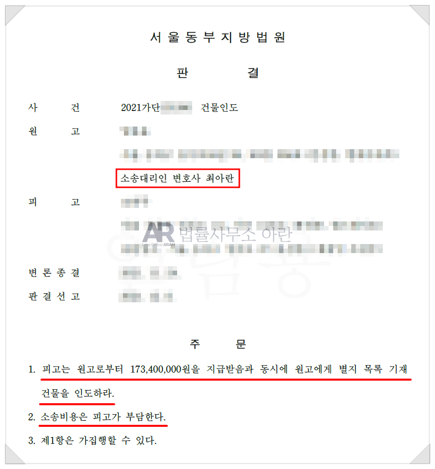 이에 의뢰인은 어쩔 수 없이 최아란 변호사를 선임하여 세입자를 상대로 건물인도 소송을 제기하였습니다.