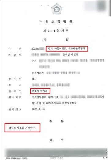 검사가 이에 불복하여 항소하였으나, 1심에서 법정구속을 피한 의뢰인이 사회에서 경제활동이 가능하였기에 열심히 배달일을 하며 합의금을 마련하였고, 결국 항소심에서 피해자 전원에 대한 피해회복을 하여 최종적으로 항소 기각된, 비교적 간단히 끝난 2심 케이스입니다.