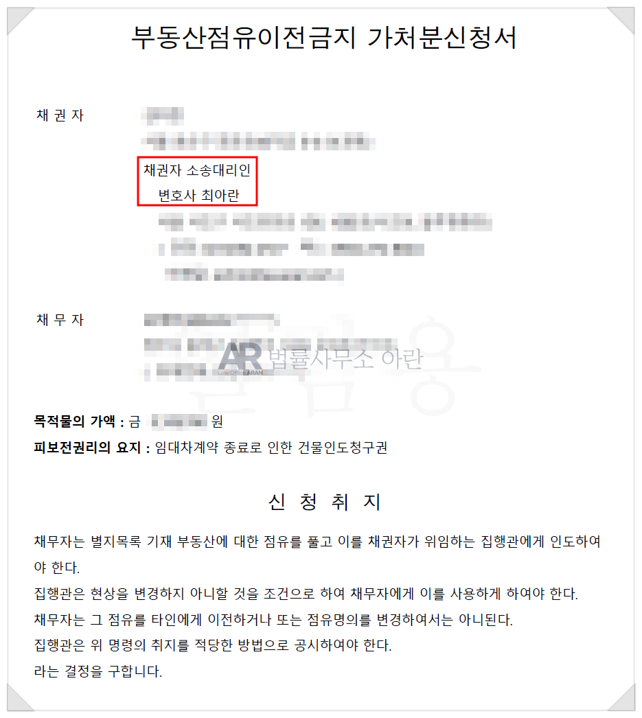 저는 가장 먼저 이 사건 건물에 대한 점유이전금지가처분을 진행하였는데요.