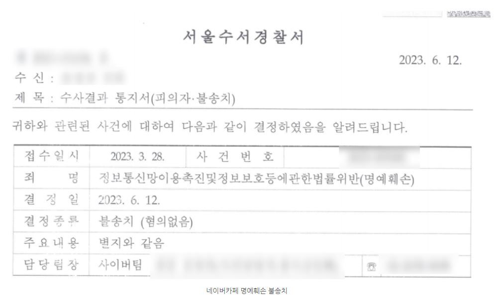 3. 최종 결과 - 네이버카페 명예훼손 불송치