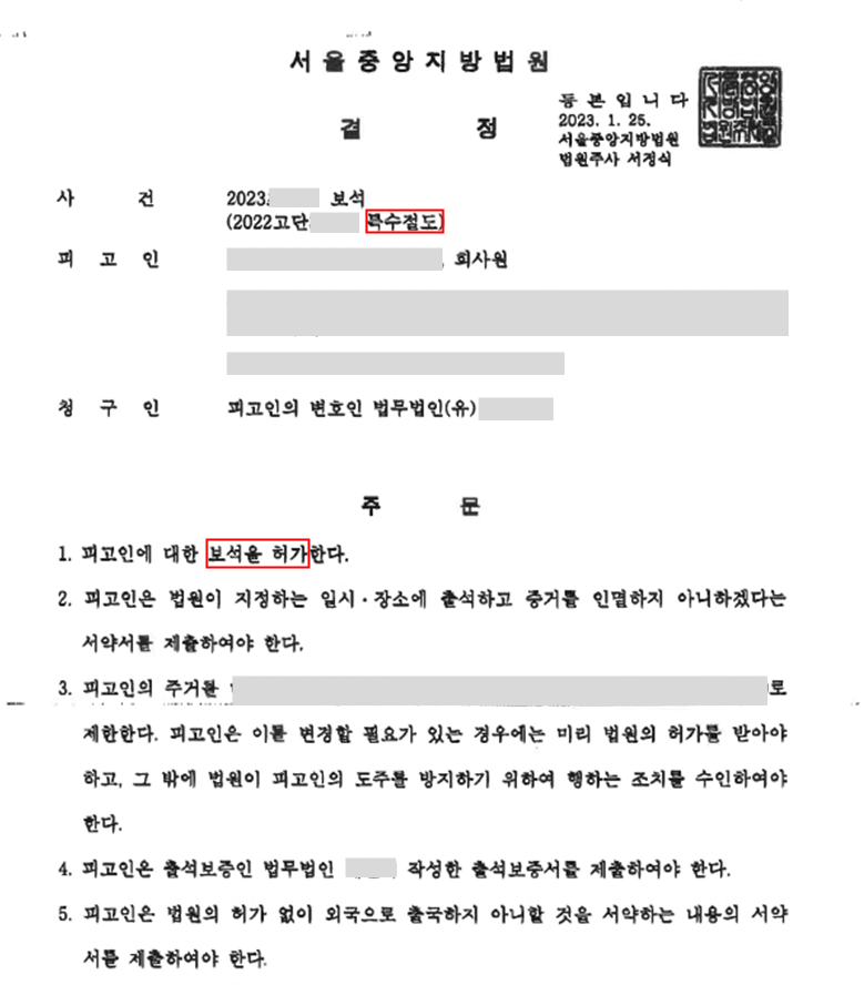 보석 허가 결정