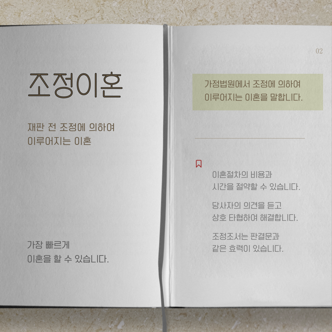 ● 조정이혼은 가정법원에서 조정에 의하여 이루어지는 이혼을 말합니다.