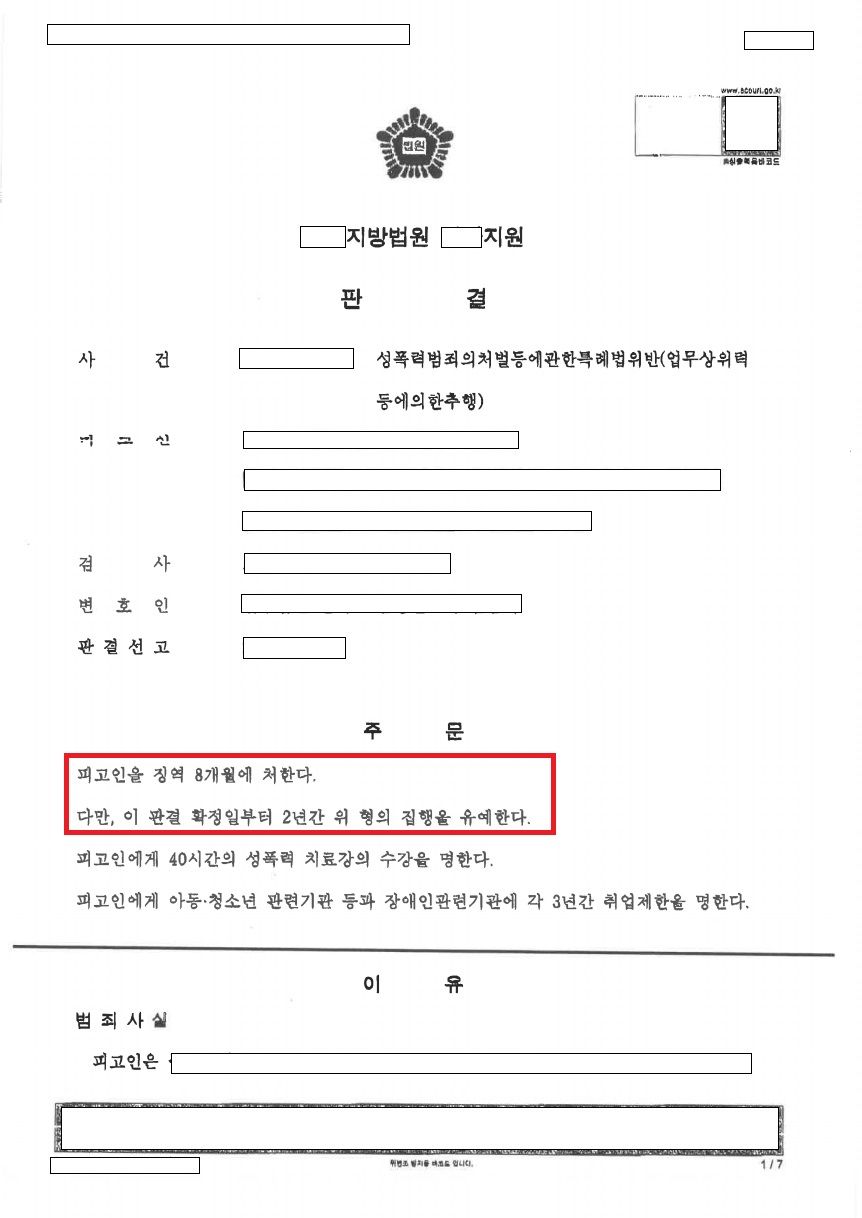 - 저는 의뢰인분과 수차례 면담을 통해 의뢰인께서 당시의 상황을 최대한 구체적으로 진술하실 수 있도록 조력하였고, 이후 그와 같은 의뢰인의 진술을 충실히 반영한 고소장 및 고소대리인 의견서를 작성 제출하였으며, 수사단계 및 공판과정에서도 수사기관 또는 재판부가 의문을 표하는 사항과 관련하여 지속적으로 의견서를 제출하고 가해자의 주장을 반박하기 위해 지속적으로 증거를 수집하여 제출하는 등 피해자(의뢰인)의 진술 외에 다른 증거가 없는 상황에서도 가해자를 처벌시키기 위해 최선의 노력을 다하였습니다.
