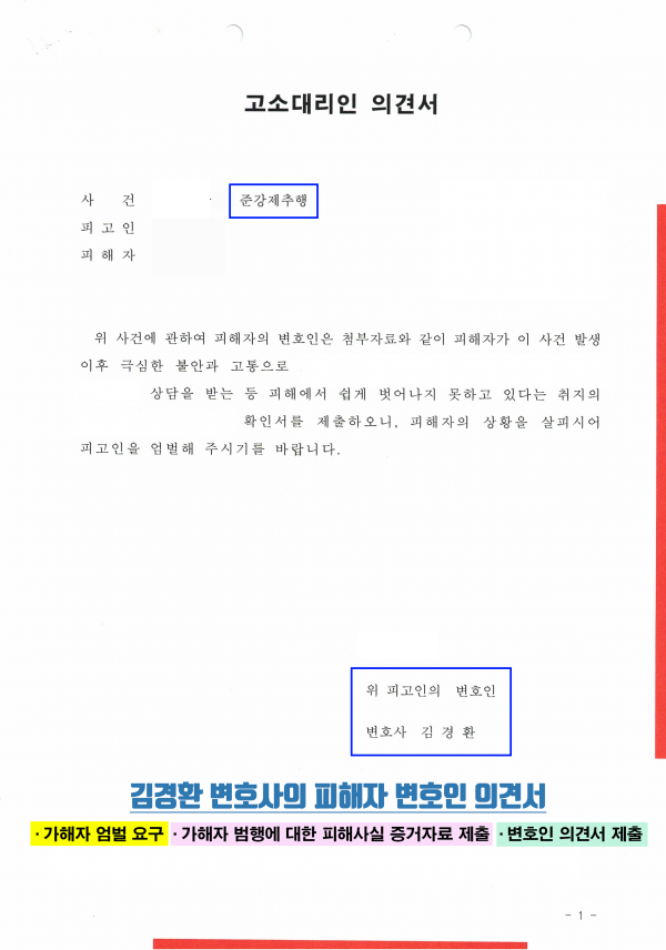 김경환 대표변호사는 사건을 수행하면서, 가해자가 이번 사건 외에도 미성년자 강간 등 사건에도 연루되어 있음을 확인하고 법적인 제재의 필요성을 주장하는 의견서를 추가로 제출했습니다.