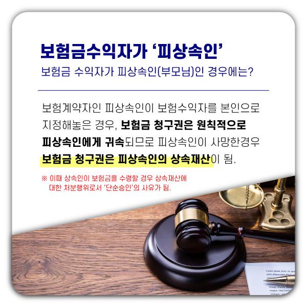 보험금 수익자가 '피상속인(사망자, 부모님)'인 경우 |