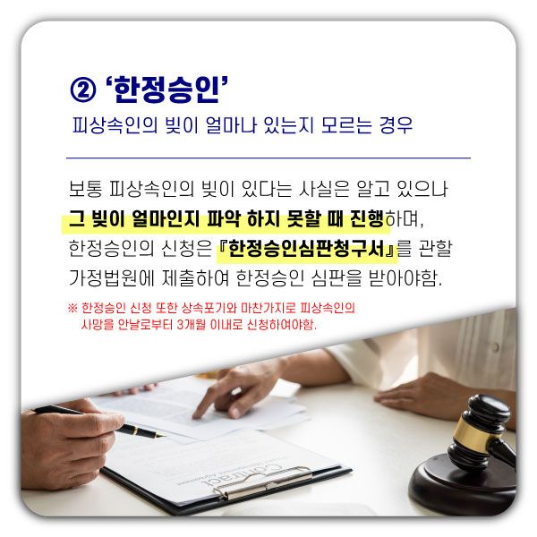 2) 피상속인의 재산은 파악되나 빚은 파악되지 않는 경우에는 '한정승인'