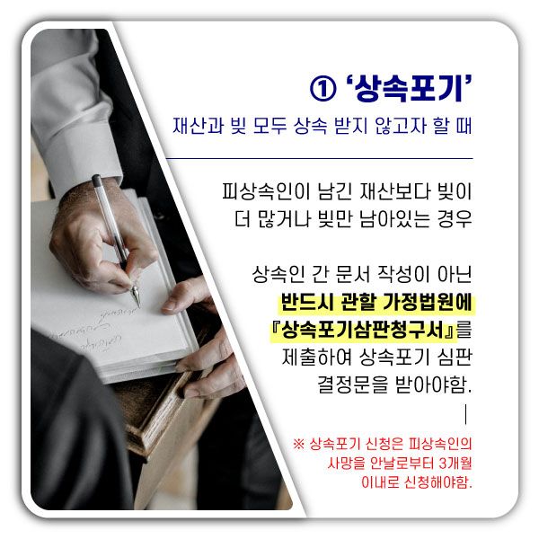 1) 피상속인의 재산과 빚을 모두 상속받지 않는 '상속포기'
