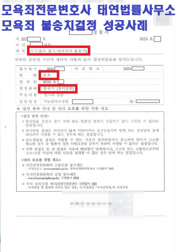그러나 태연법률사무소는 모욕죄전문변호사로서 수많은 모욕죄 고소 대응을 성공한 사례를 보유하고 있는 만큼! 의뢰인의 사안에서도 불송치 결정을 수령할 수 있도록 해보자고 말씀드렸습니다.