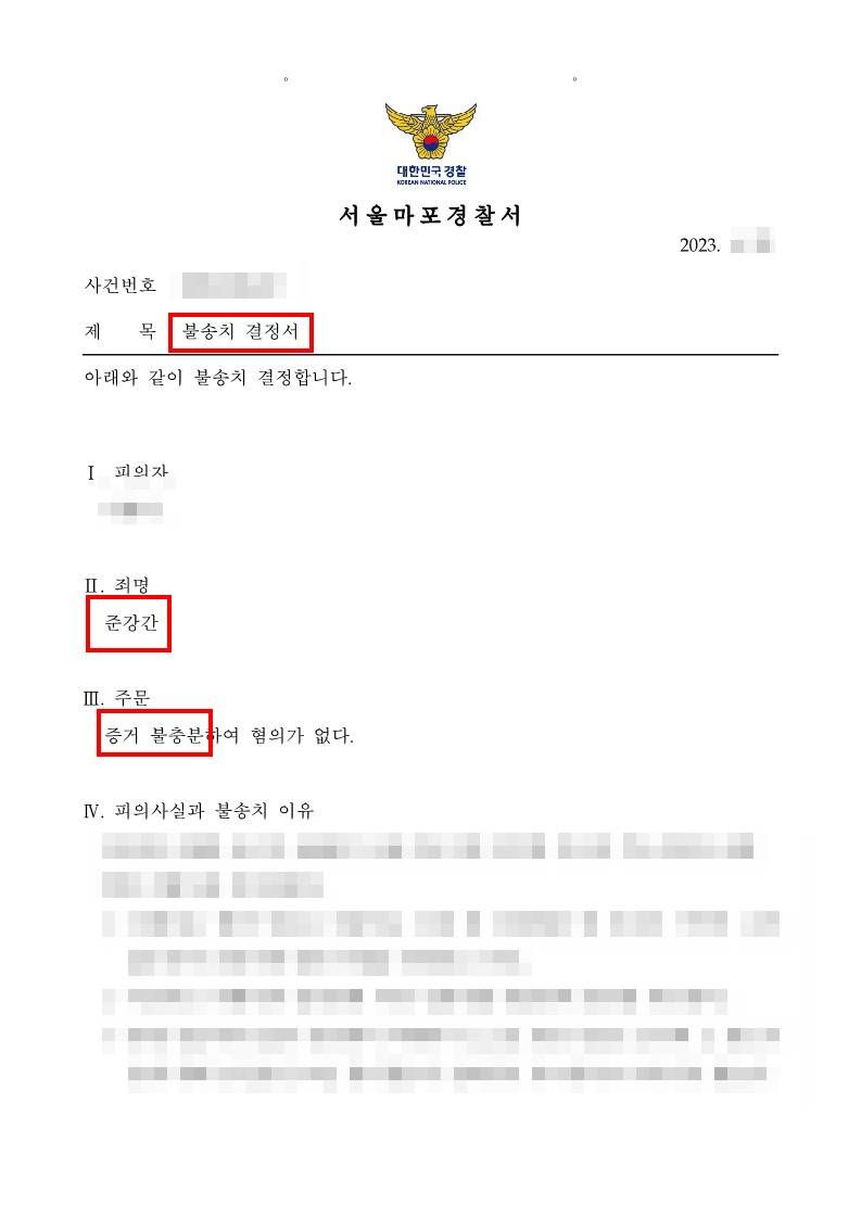 │불송치 결정(혐의없음)