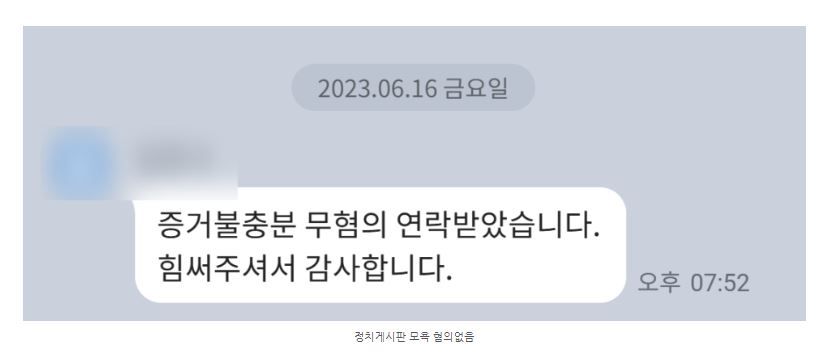 3. 최종 결과 - 정치게시판 모욕 혐의없음