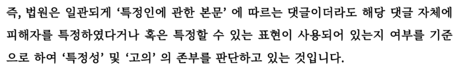 본문에 누군가에 관한 게시글이 작성되어 있고, 그 게시글에 댓글을 작성하였다 하더라도 무조건 '특정성' 이 인정되는 것은 아닙니다.