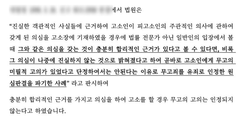 저희는 의뢰인분이 명확한 근거를 가지고 '진실한 사실' 에 기반하여 신고를 하였고, 또 그렇게 볼 만한 합리적인 정황이 있었기 때문에, '허위의 신고' 는 인정되지 않는다는 판단 하에 사건을 맡게 되었습니다.