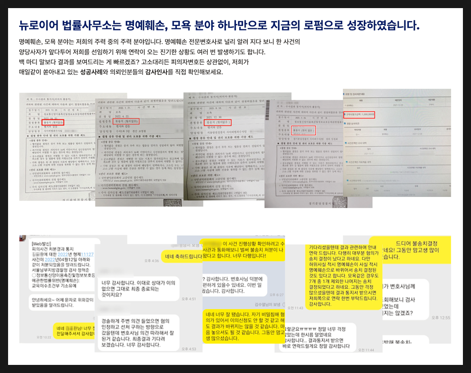 그리하여 지금부터 명예훼손 사건에서 다수의 무혐의를 이끌었던 로펌으로서