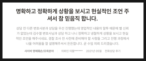 직장 명예훼손 사건에서 양 당사자분이 찾아주신 이례적인 사례도 보유하게 되었습니다. ^^