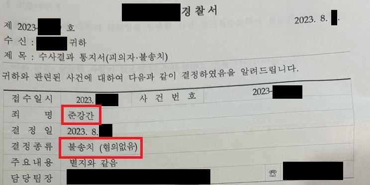 경찰 단계에서 깔끔하게 불송치(혐의없음)를 받아냈습니다.