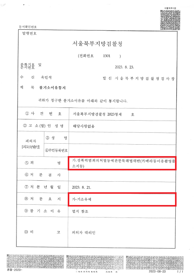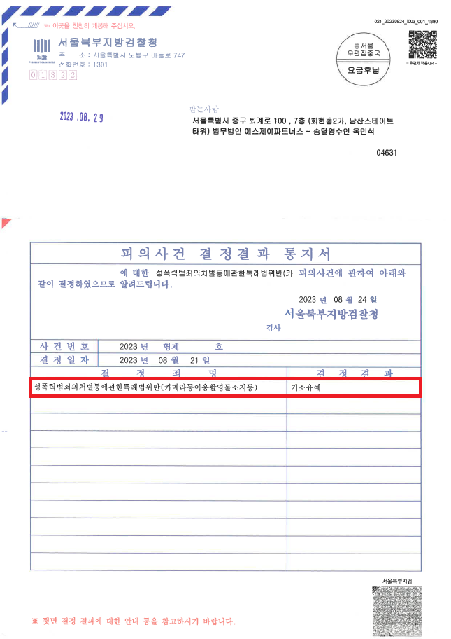 이후 사건은 검찰로 송치되었고, 이에 저는,