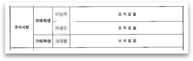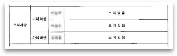 여기서 ‘피해학생’은 원래 가해학생들이었고, ‘가해학생’으로 표기된 학생이 저희 의뢰인입니다. 학폭이 인정되지 않았고 가해학생에 대해 어떤 조치도 나오지 않았습니다.