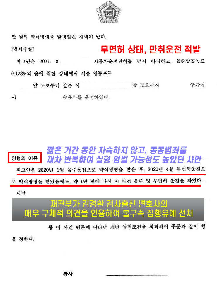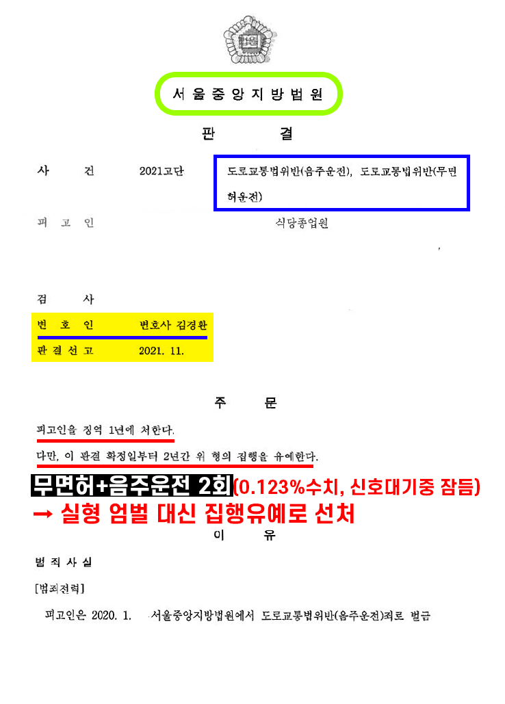 *죄명 : 음주운전, 무면허운전 2진아웃