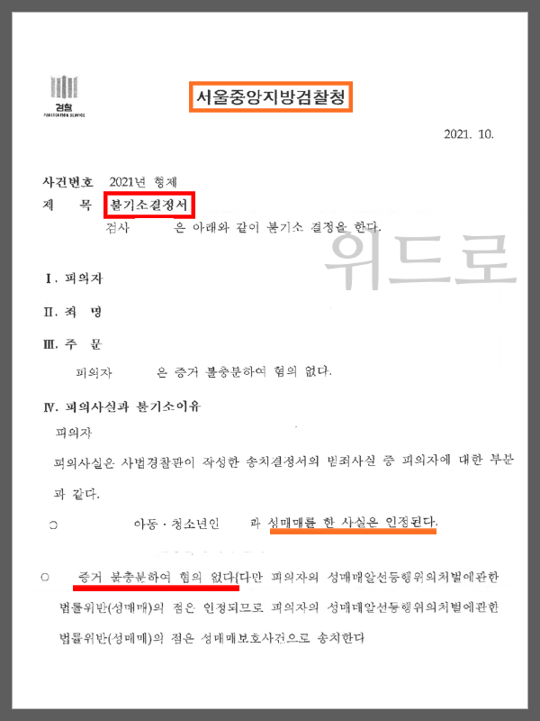 - 아동·청소년의성보호에관한법률위반(성매수등) : 불기소