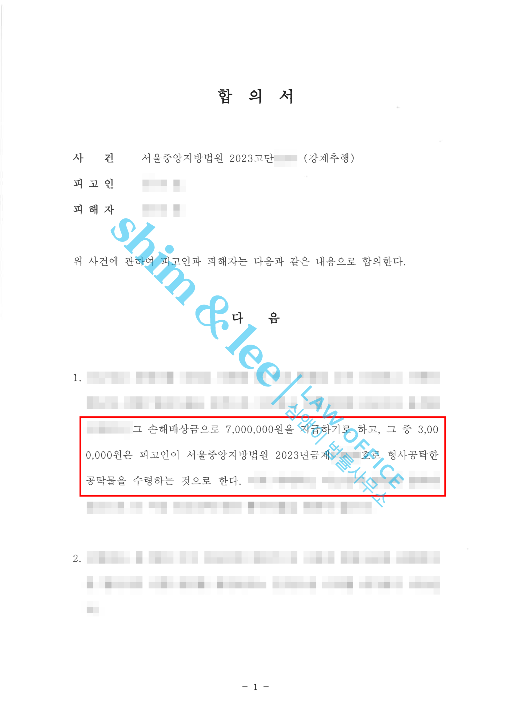 가해자의 공탁금 300만 원과 추가 합의금 400만 원을 더해 총 700만 원으로 합의할 수 있었습니다.