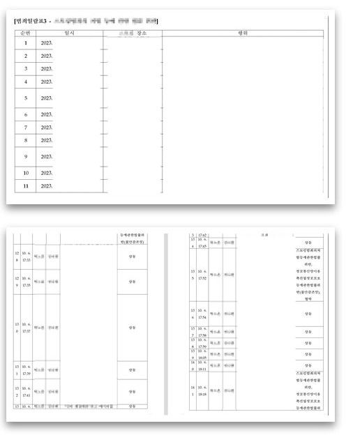 직접 작성한 검찰 스타일의 범죄일람표를 첨부하고,