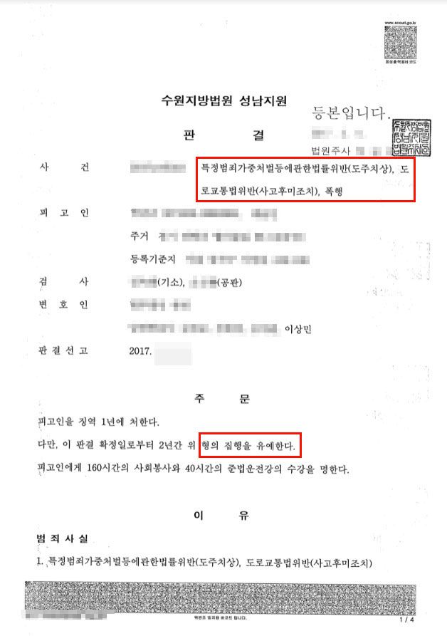 위와 같은 본변호인의 조력에 힘입어 의뢰인은 재판부로부터 징역 1년에 집행유예 2년이라는 선처를 받을 수 있었습니다.