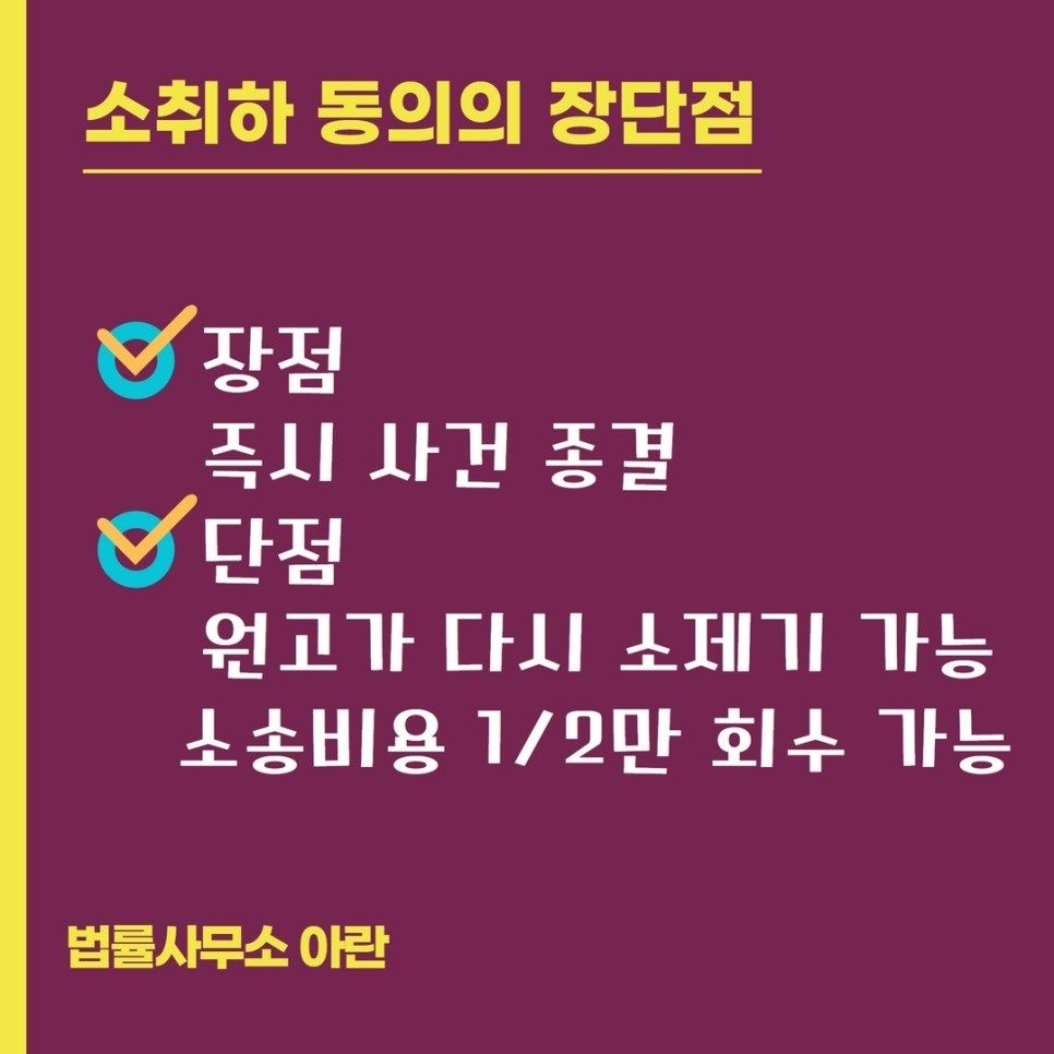 따라서 소 취하 동의는 장점보다는 단점이 많은 것이 현실입니다.