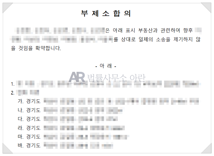 따라서 소 취하에 동의를 하시려거든 원고로부터 '다시는 이 사건과 관련해서 소를 제기하지 않는다'라는 내용의 명확한 서류, 즉 부제소합의서를 받은 다음에 소 취하에 동의하셔야 합니다.
